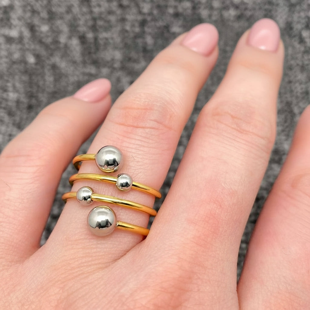 Two Tone Steel Ball 18K Gold Plated S.Steel Ring - Size 7