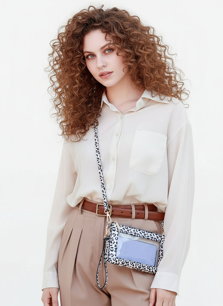Cheetah crossbody puts everything you need within reach. Its three distinct compartments keep your essentials organized, while the transparent phone window lets you stay connected without fumbling through pockets. Slip your cards into dedicated slots, switch between the adjustable crossbody strap and included wristlet for whatever your day demands, and enjoy the durability of premium canvas or vegan leather.