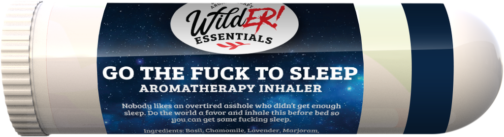 New from Wild Essentials (not your Mama's aromatherapy)! Our “Go The Fuck To Sleep” insomnia blend is a powerful blend and highly effective at inducing sleep. Our unique proprietary blend of Basil, Chamomile, Lavender, Marjoram, Myrrh and Vetiver 100% pure, premium grade essential oils.