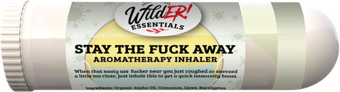 New from Wild Essentials comes a line of edgy yet very gift-able products branded as Wild-ER Essentials (not your Mama's aromatherapy)! Our “Stay The Fuck Away” immune boosting blend is a powerful blend to keep you protected. Our unique proprietary blend of Cinnamon, Clove, Eucalyptus, Lemon and Rosemary 100% pure, premium grade essential oils.