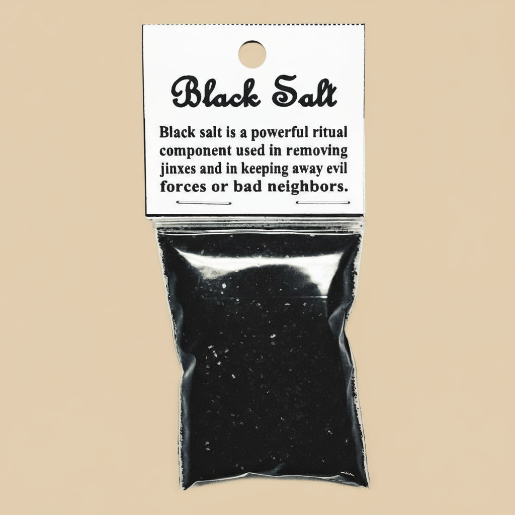 Harness the protective power of black salt, a potent ritual ingredient for spiritual cleansing and defense. This 1 oz portion works to dispel hexes, banish negative influences, and create a barrier against unwanted energy or difficult people in your life.