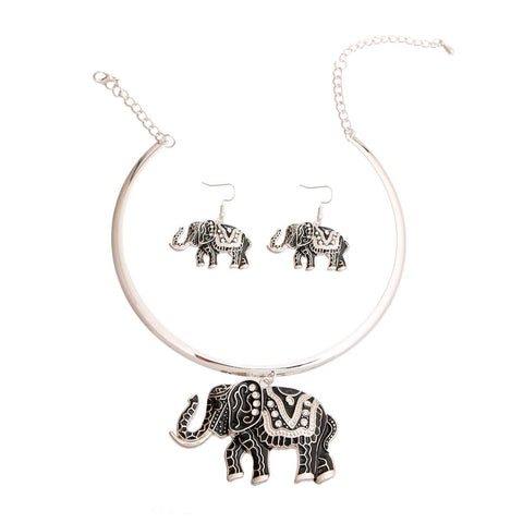 Black Tribal Elephant Choker Set: Color / Rhodium / 18 inches